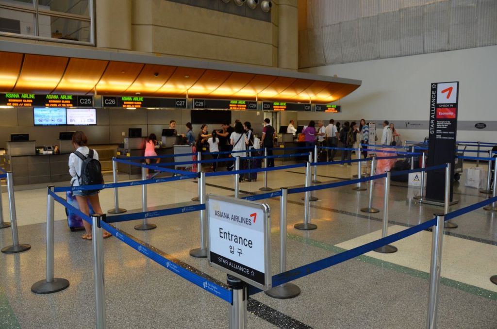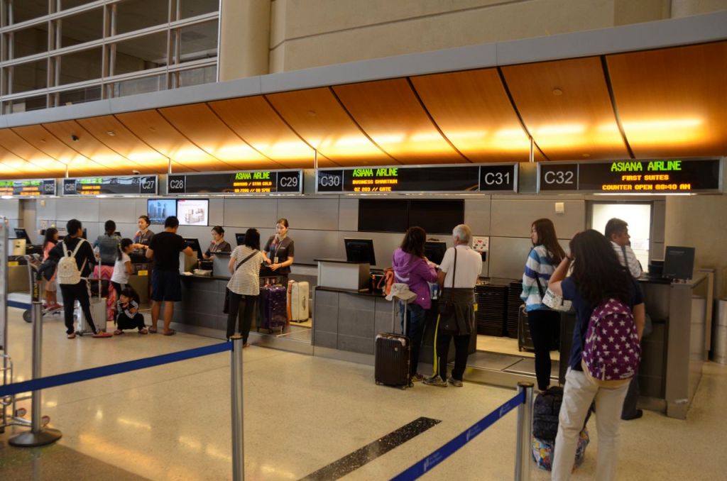 We located the Asiana counters. They were open as of 08:00 AM per the Asian website from the Asiana Magazine that we had picked up from an earlier flight. This was great for us as our flight had a 12:40 PM departure and we were able to drop our bags a good 3 3/4 hours before our departure time.