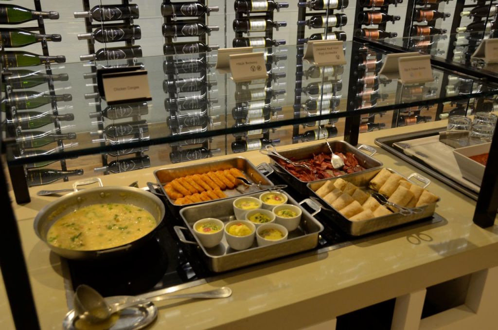 The lounge is designed to service international business class flights. As a result, it had a more substantial food and beverage section as compared to a regular domestic lounge. The food and beverage area has the most impressive wine rack I’ve ever seen in any First or Business Class Lounge worldwide.