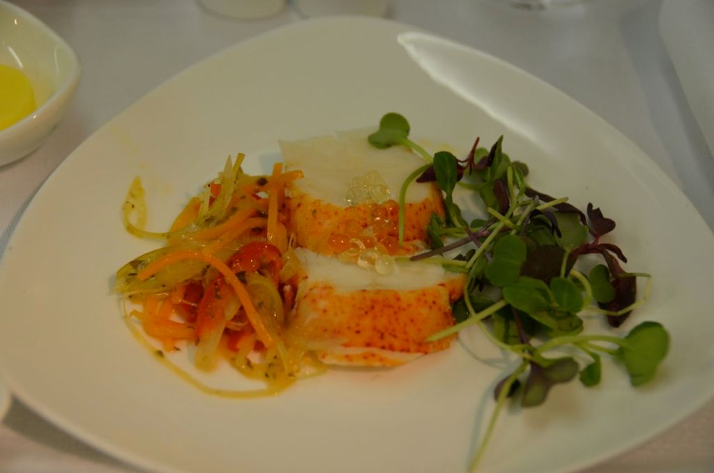 The starter was the lobster with white balsamic pearls.