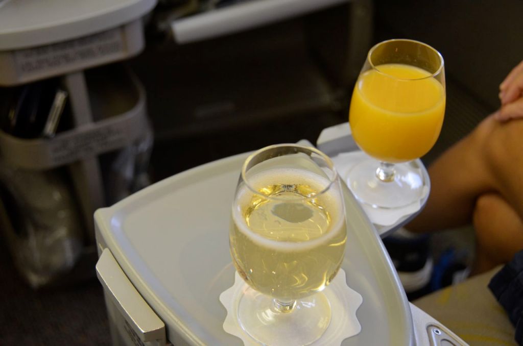 There was a pre departure beverage offered of water, sparkling or orange juice. Indonesian Immigration cards were immediately passed out. My son opted for orange juice, while MrsWT73 and I had sparkling.