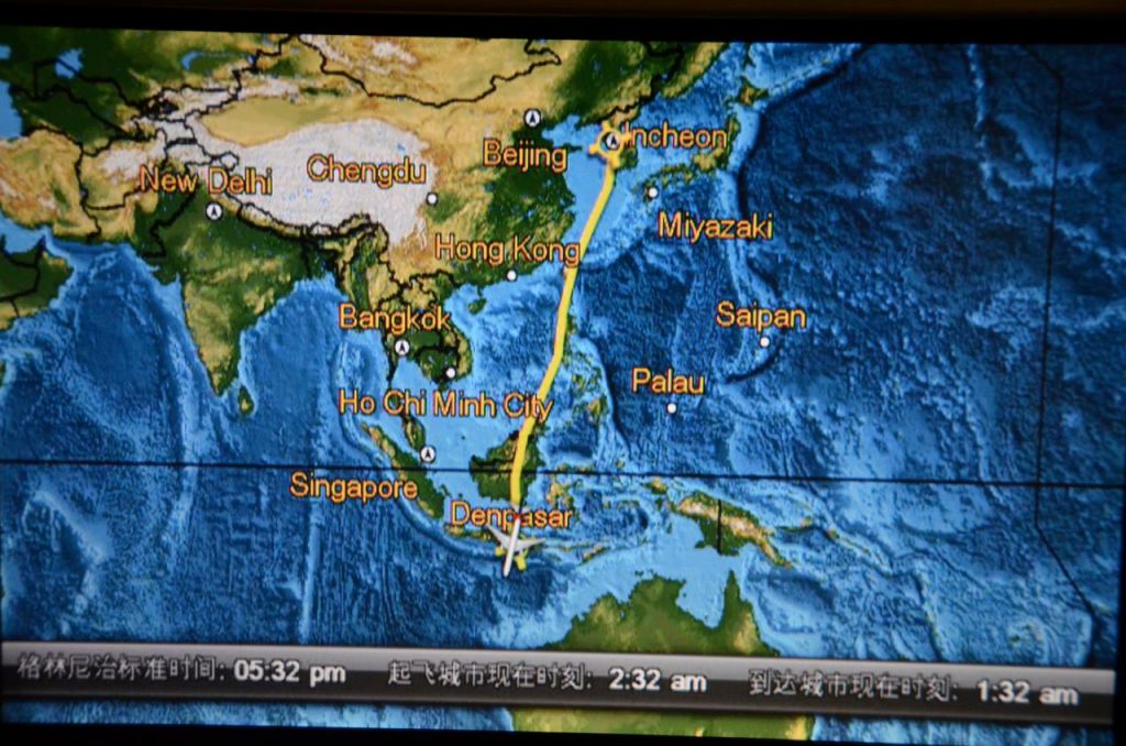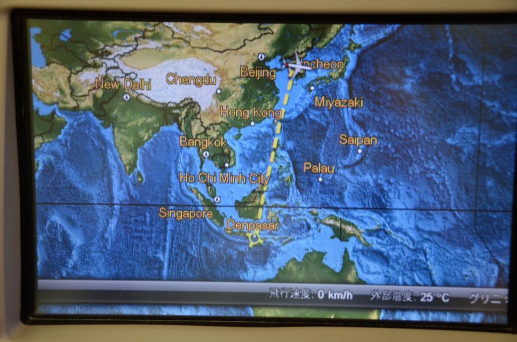 Our connection within Asia after a wonderful Airbus A380 flight was also on Asiana Airlines on their older Boeing 767 product. One of Asiana Airlines best features is the consistency of their in flight service. It is always flawless in execution, even if the hard product is not. While we had a bit of an older aircraft on this route, we drifted off after we took a shortcut from North America to Bali.