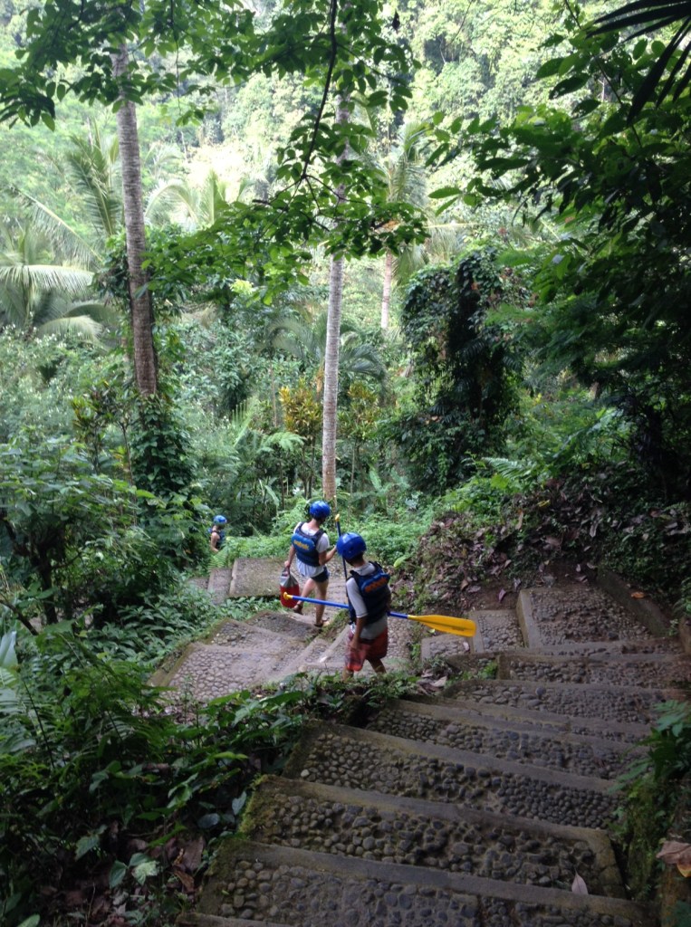 The tour involved an entry level Class 2 / 3 white water rafting adventure through the Ayung Rapids, a visit to the Monkey Forest and a top at Tanah Lot oceanside temple on the West Coast of Bali. My son was really stoked about this experience, much more so than his zip lining experience in Costa Rica. It took almost no convincing when I brought up this idea earlier in the week. The day would end up looking like this.