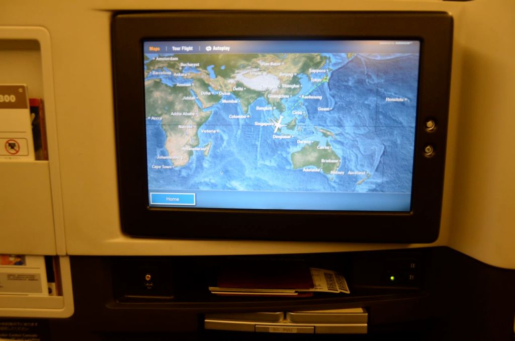 The seats featured a large screen for entertainment. The screens were modern enough and were larger than the usual feature for international business class. The seat console featured a magazine rack and a storage space, which was handy but I didn’t really use.