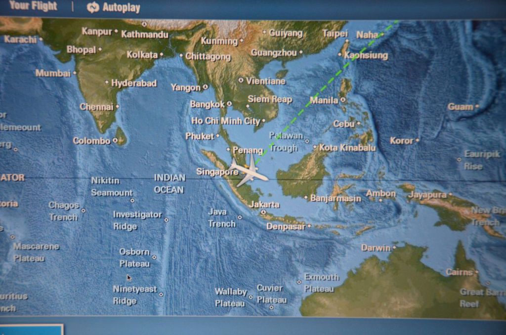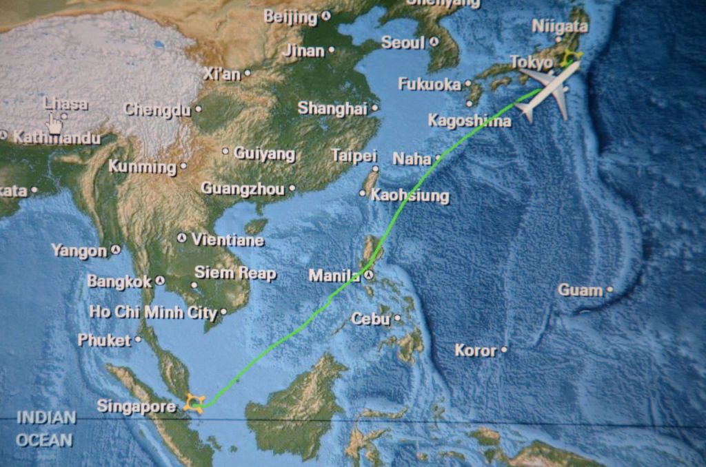 As we got underway from Singapore, our flight track would have us over the South China Seat, passing north of the Phillipines towards the island of Japan.