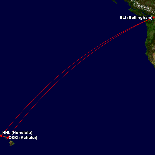 - Alaska Airlines First Class: Bellingham – Honolulu