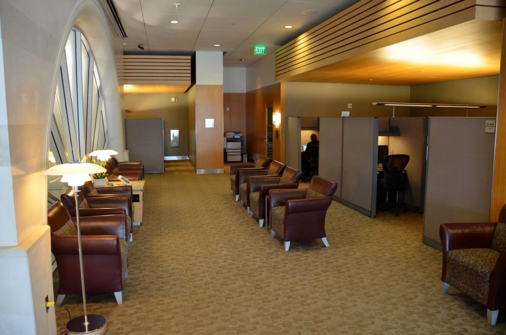 Overall, there were ample places to sit. The majority of them had daylight views, making this lounge space a pleasant one to be in.