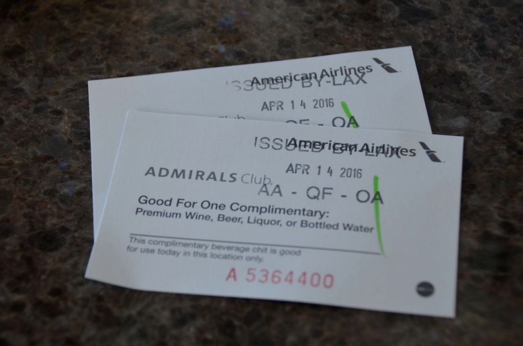 Getting back to our story, I was without an International Boarding Card for our onward journey on fellow One World member Qatar Airlines Business Class Los Angeles – Doha. Arriving to the counter, I plead my access and entry case with the lounge dragon. I didn’t know whether they would let us in given that we were flying Qatar in another terminal and I didn’t have any onward boarding cards, just a printed itinerary as proof of onward travel. The only difference between MrsWT73’s booking and mine was the ticket number. Fortunately, the lounge reception host was an AAngel (as they say) as she looked my ITIN and confirmed that I was eligible for access. We also got 2 free premium drink chits stamped with our onward journey on Qatar.
