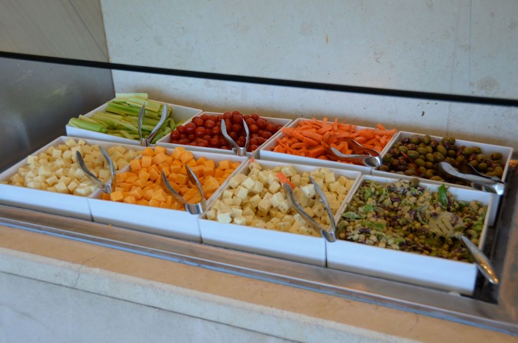 The American Airlines Admirals Club had a reasonable amount of snacks available. There was food available to order (at cost) and actual unwrapped cheese cubes, unlike those wrapped Tillamook cheeses next door in the United Club.
