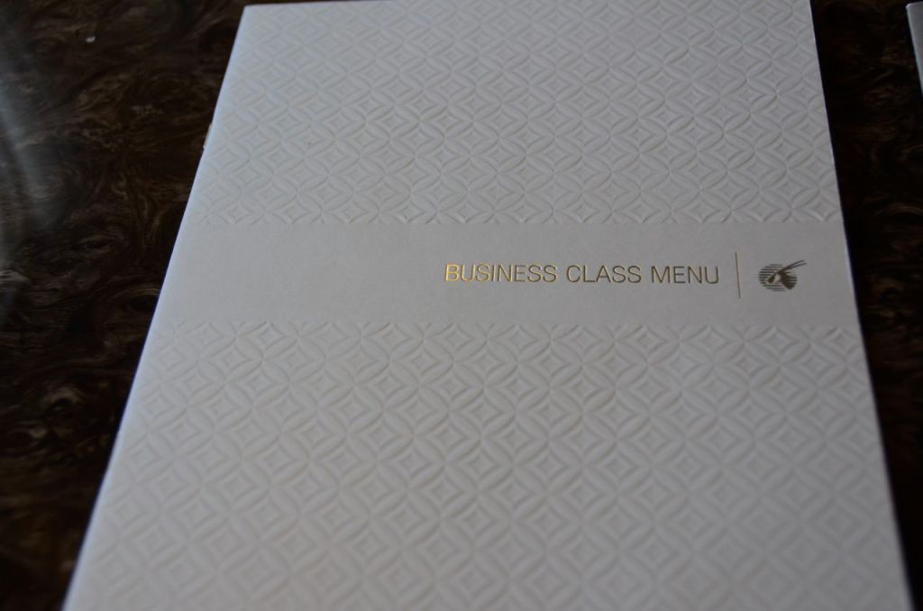 The menus were presented shortly after boarding. The menus were in a nicely bound paper with subtle textures to the cover.