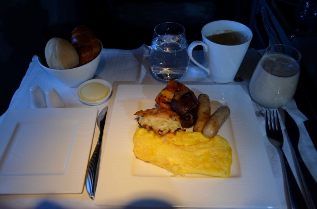 I went with the banana and coconut smoothie, two café lattes, and the cheddar cheese omelette with grilled chicken sausage. Qatar seemed to run out of smoothies as MrsWT73 asked for one after a taste test of mine and she was not able to get one at all as they had run out.