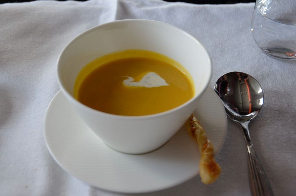 This was followed with Roast Butternut Squash Soup with lemon and herb crème fraiche with a cheese twist
