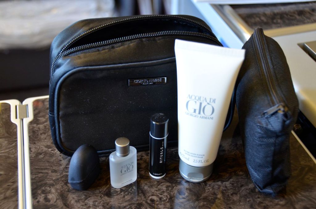 There were separate men and women’s Giorgio Armani kits in sleek black pouches. The contents were not super useful, (as in, there were not a lot of items inside), but it was better than nothing. The kits were also classy looking.