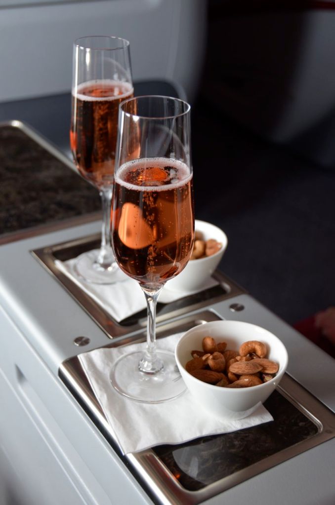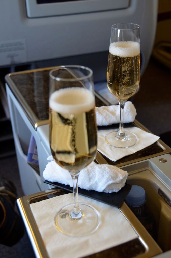 There was a prompt pre-departure beverage of water, lemon mint or champagne was offered. Of course, with any international flight, we went with champagne today in a proper elongated flute along with a towel service.