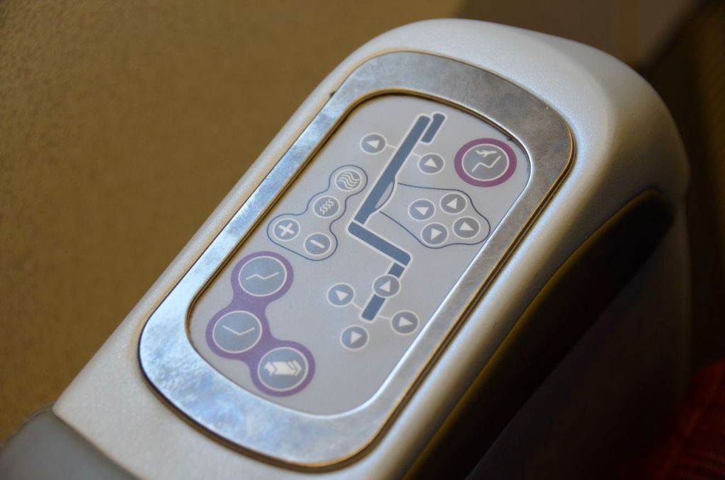 The seats are quite dated, but they are exceptionally comfortable for traveling as a couple. There is quite a bit of space between the seats, with only 4 rows of business in the front cabin, and 3 rows of business in the second cabin. There was so much space, I couldn’t even reach the foot rest with my feet!