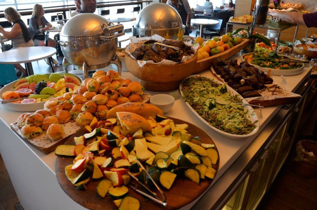 There was a surprising amount of food available for a domestic lounge. The food was all spread out on a buffet table. The food looked pleasant but really tired. It was almost as if it had been sitting out all day or 4+ hours and had a bit of a stale look to it. Still, it would have looked impressive based when it would have been initially presented.