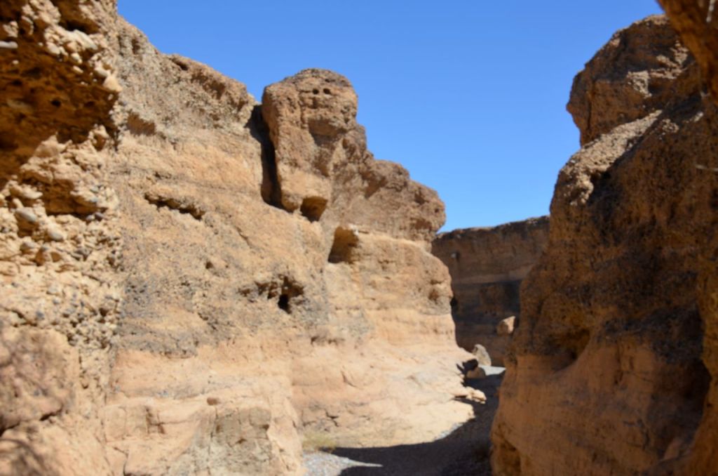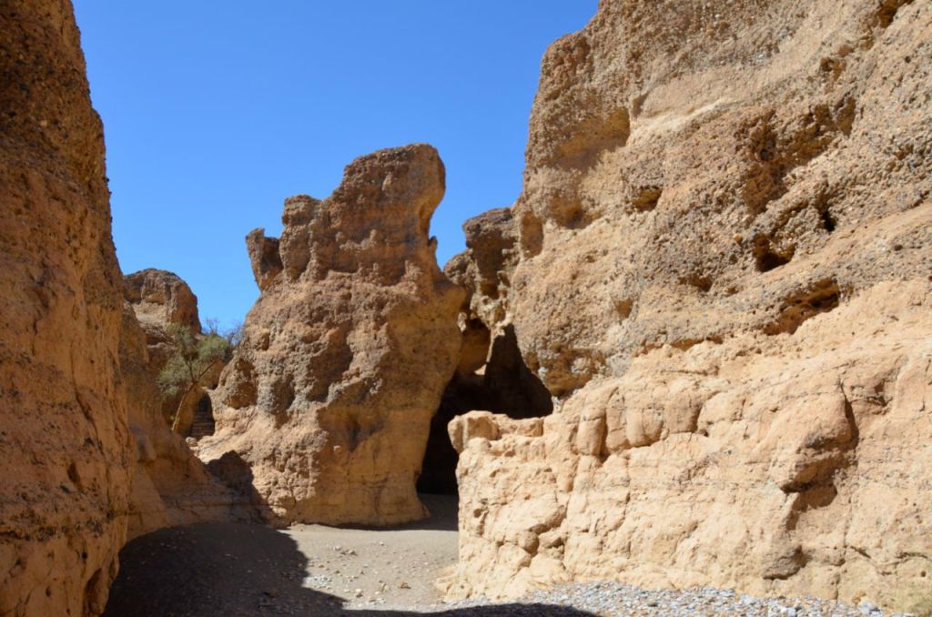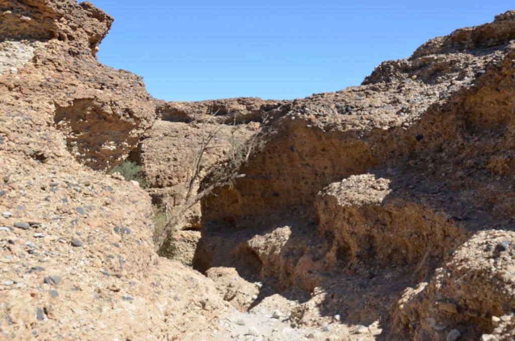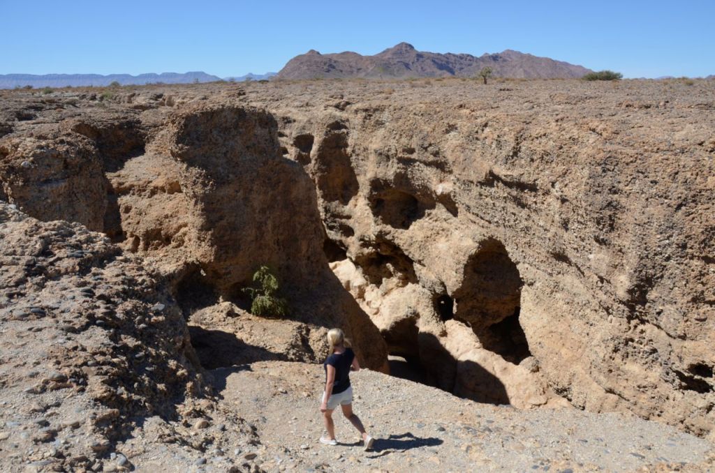 We departed the Sossus Dune Lodge and called in at Sesriem Canyon on the way out of town. It is located right across from the Sossus Dune Lodge entrance. A short clamber down what appeared to be a small river bed actually turned into a large deep ravine that contained water at one time over its life cycle.