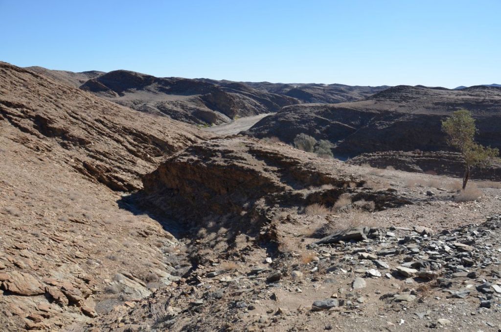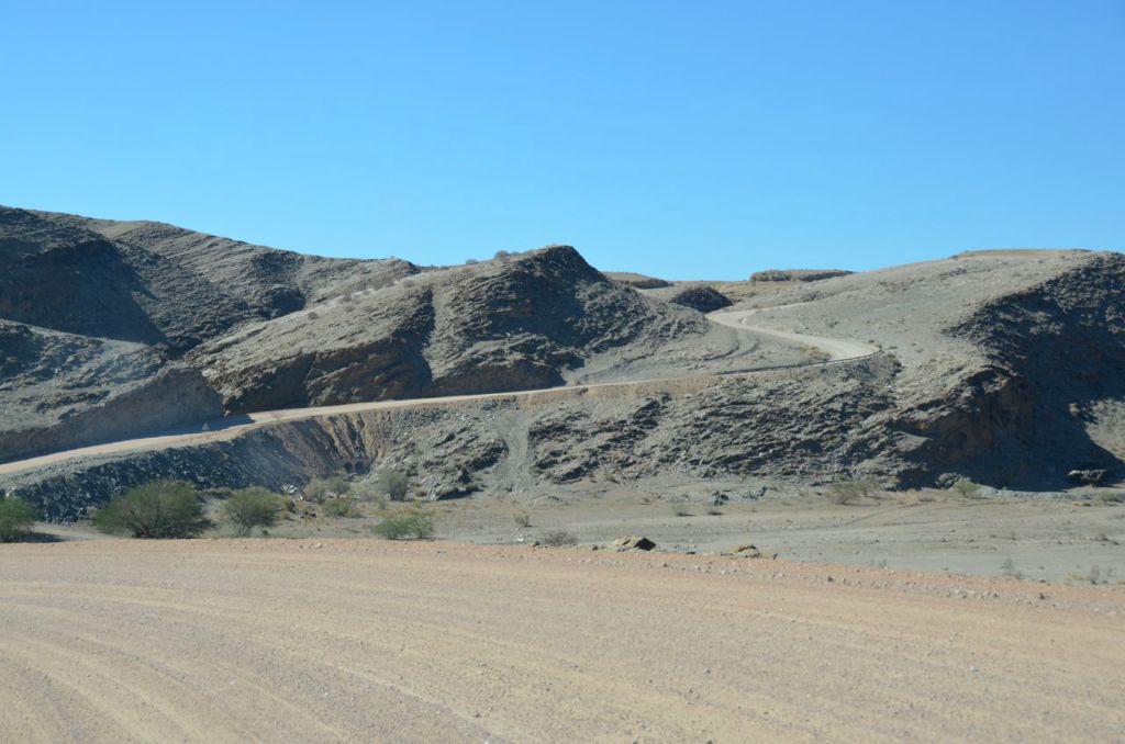 Getting onwards with our trip, we passed through several mountain passes; Namibian style. These weren’t the typical interstate or highway mountain passes that we had at home, rather they were roads cut into the sides of mountains allowing the roadway to pass through canyons or hill sides and through dry river beds. Once again, there was some fascinating and rugged natural scenery as we passed through these two passes which had a lot of moonscape type of terrain.
