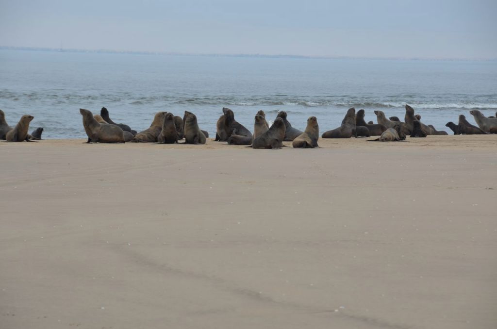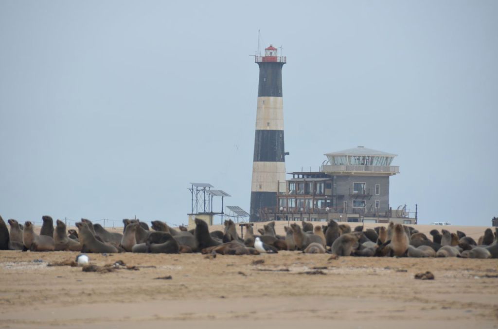 One of the attractions of Pelican Point isn’t pelicans or penguin’s but rather a seal colony that is near the Pelican Point lighthouse. Shortly after breakfast, we went for a walk to the nearby seal colony. The sea colonies have taken up home on the Pelican Point for a few years now. The fisherman reportedly aren’t too keen on it as they get caught in the nets / lines and destroy the local fish populations. It was pretty amazing to see as there were literally thousands of them.