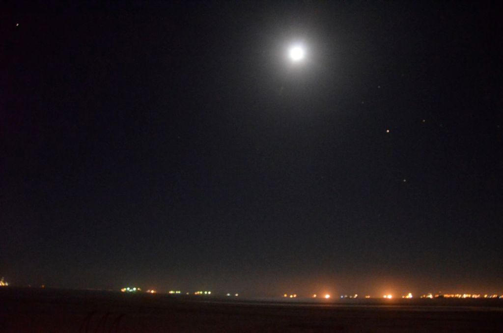 After dinner, we went for a look outside to appreciate the sheer isolation that we were in. We could see the lights of Walvis Bay in the distance, along with some over water oil drilling tankers nearby. The sounds of crashing surf were all around. There was also a full moon out which illuminated the whole place.