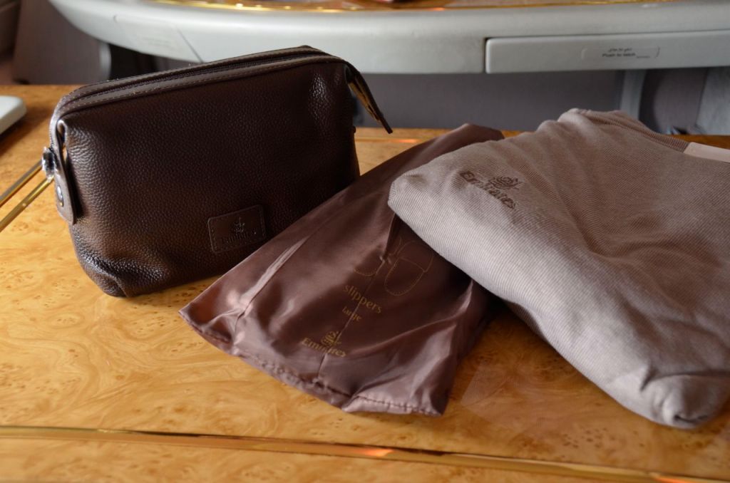 We were also offered large Pyjamas and a men’s amenity kit were provided in the Emirates branded tote bag.