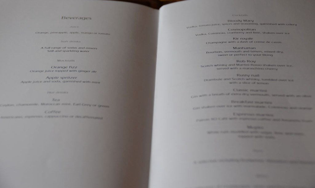 We settled into the seat and had a closer look at the menu and saw what food and beverage was on offe The Menus were presented in a very elaborate menu similar to a fine restaurant.