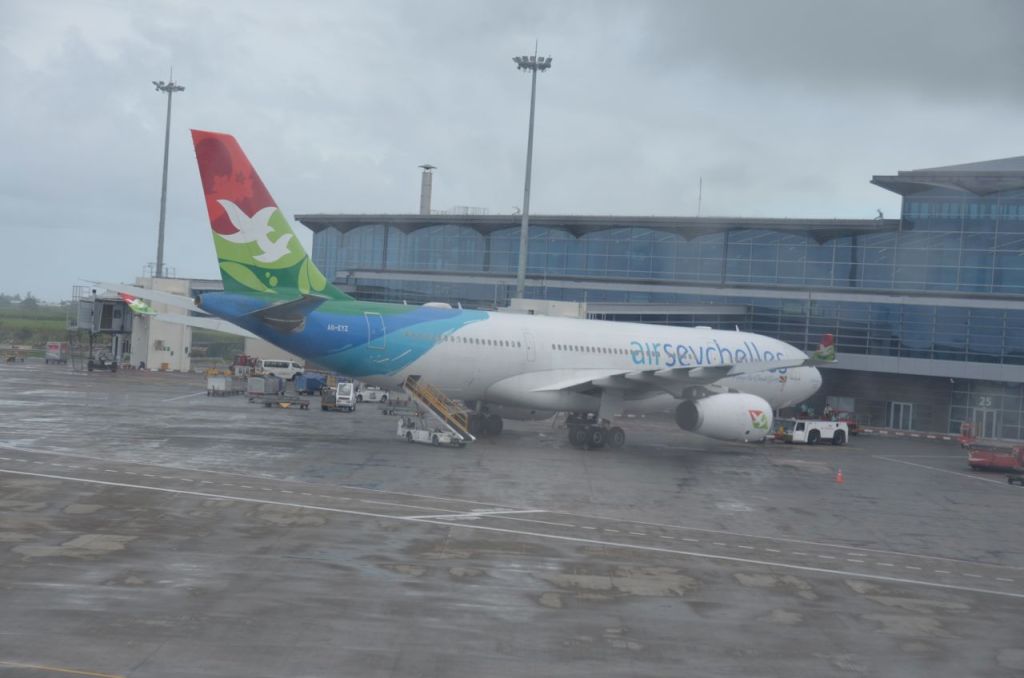 We had a quick departure and take off with short taxi way in Mauritius. We were next to an Air Seychelles A3w0 on pushback. It was a wet departure leaving Mauritius today.