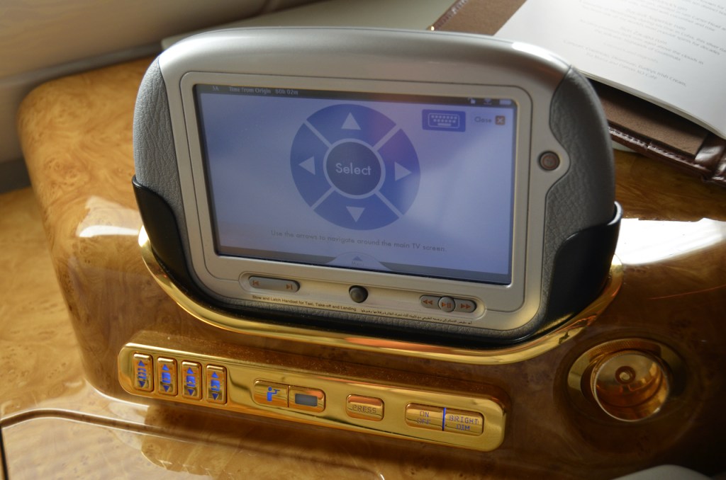 The suite controls were controlled by a flat screen controller, that had touch surfaces on it. There was also an in flight wired remote for the entertainment.