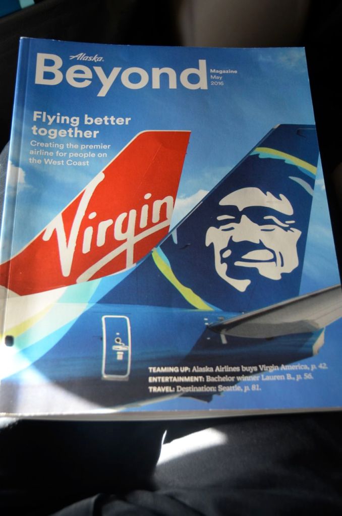 The Alaska Airlines in flight magazine was promoting the recent Alaska / Virgin airlines merger.