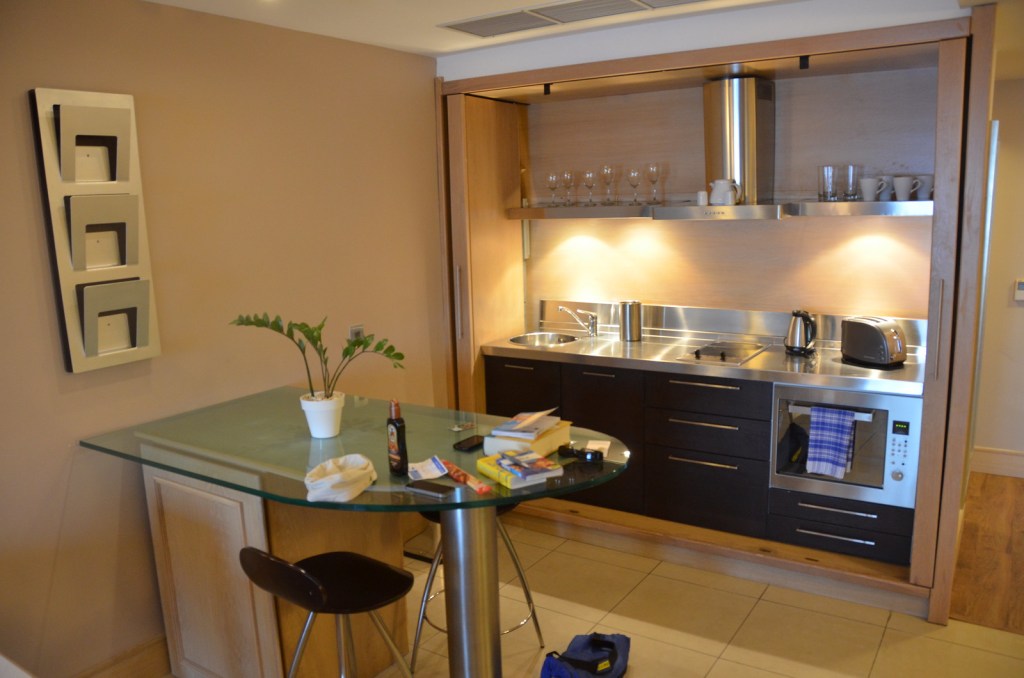 There was a mini bar and a kitchen stocked with pots and pans for those nights in. We didn’t have any.