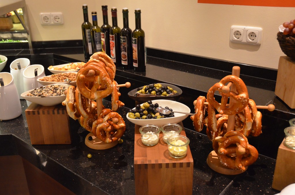 This was the first hotel that I have been to that offers a giant pretzel from a rack at the front desk to guests that are checking in. On arrival, we were given a SPG Platinum suite upgrade at the front counter as part of our elite benefits to be upgraded to best available room. We were on back to back reservations in my name and MrsWT73’s name (only SPG Gold) but despite a little “Tetris” at the front desk, there were unable to keep us in the suite both nights. They were very accommodating to have us in the room immediately next to ours on the second night.