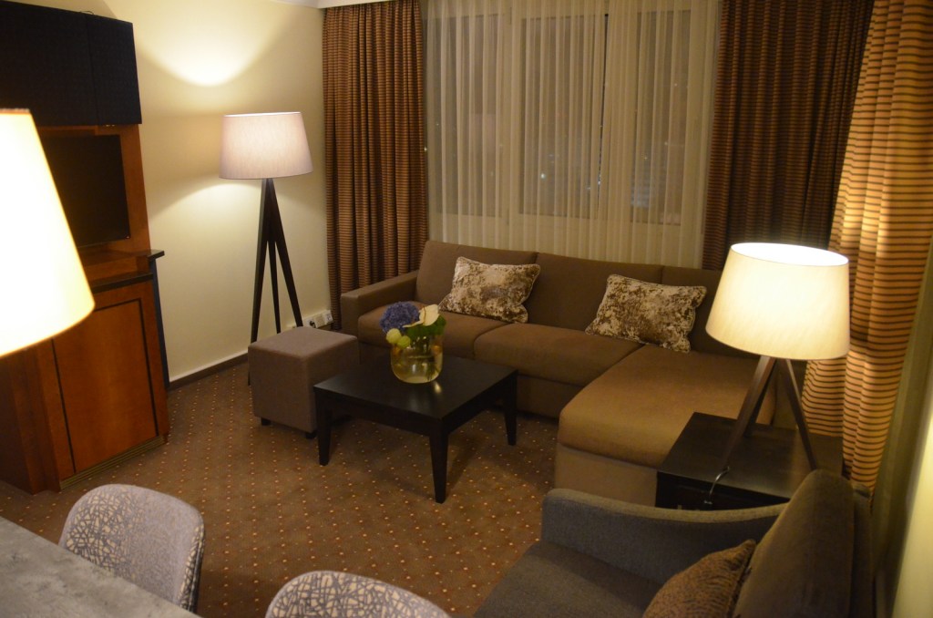 Our room was assigned as a Junior Suite # 1803 was actually designed as two standard rooms that had been converted into a suite. Passing through to each area was through the a-joining door. Instead of a bed in the other second room, there was lounger sofa bed. The room was nicely situated on the corner of the building, so the room had nice light throughout the living side.