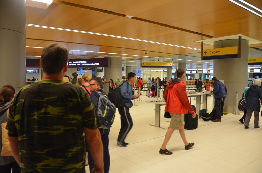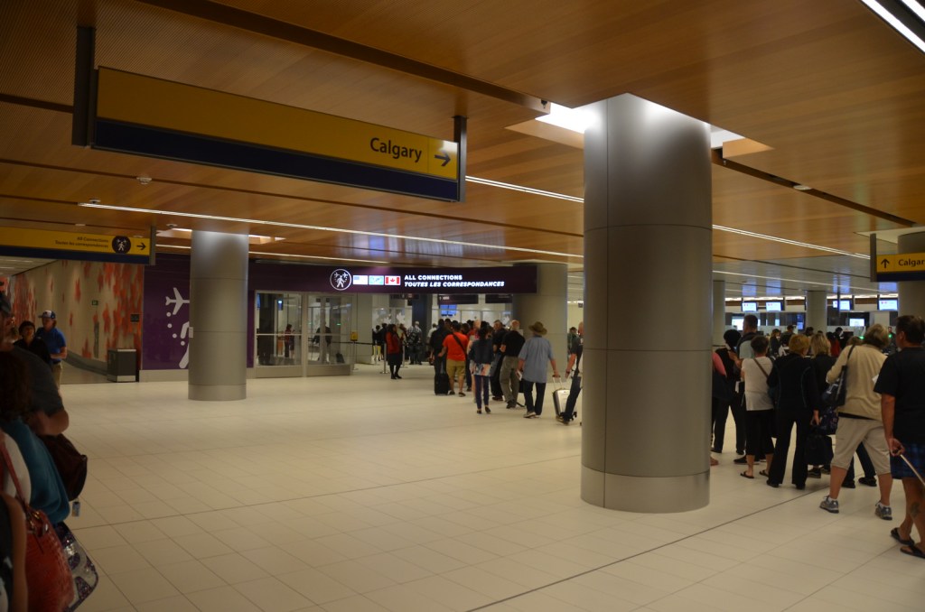 Okay, it’s obvious that at the time of our visit, the Calgary Airport Authority hadn’t gotten their mojo quite right with the opening of the Calgary International Airport terminal. Since Westjet uses the airport as a connecting hub, most of their passengers are connecting flights. Unfortunately, there were only 3 primary inspection lines at customs open today for connecting passengers, which are separated from arriving passengers. This meant a line across the entire arrivals hall, blocking up pretty much every lane. It didn’t seem like a lot of happy travellers here today.