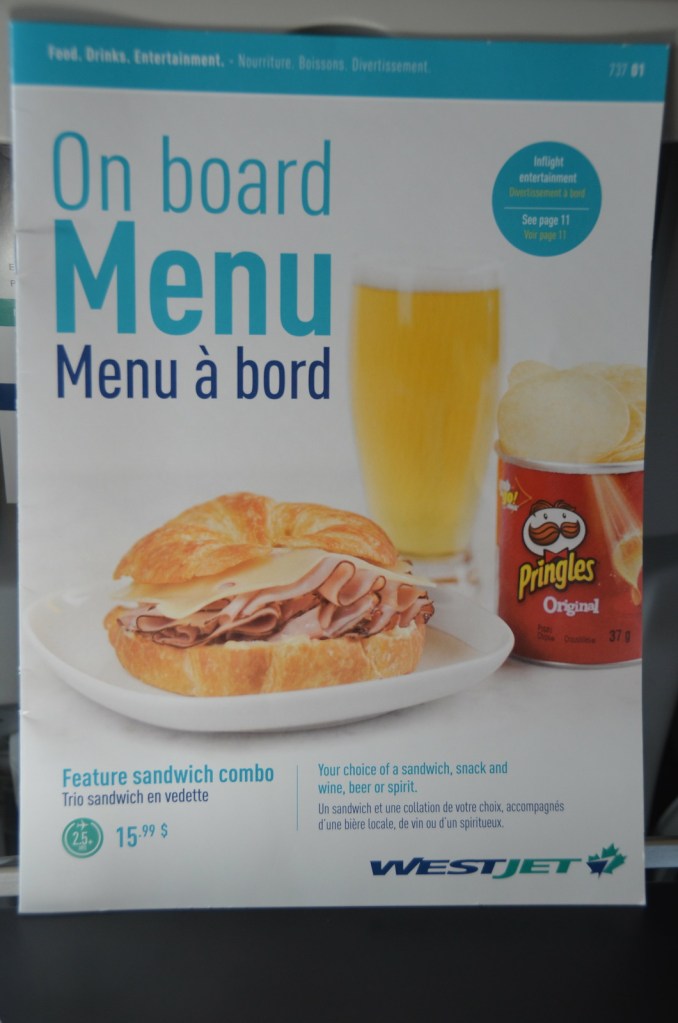 They had a special section featuring the Plus seating of the aircraft, that featured the same buy on board menu. It’s a bit disappointing that Westjet has chosen to go with assembling the buy on board materials and presenting them all at once as a business class meal.
