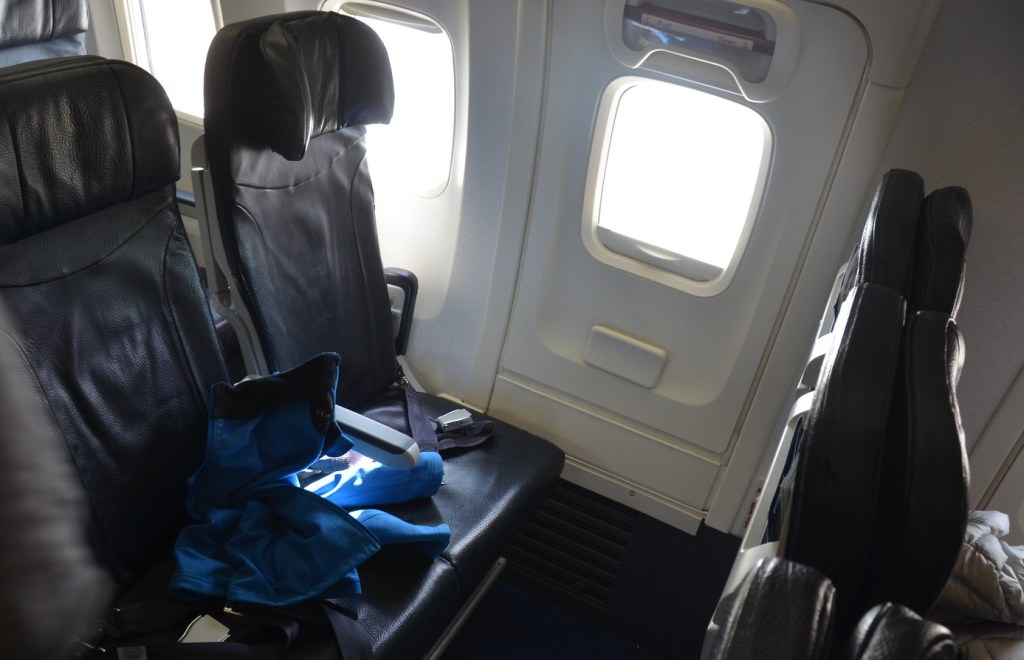 I had pre-booked emergency exit rows for us today at the cost of $30 CAD ($24.20 USD) per seat for this five hour segment. It offered much more leg room than the regular seats.