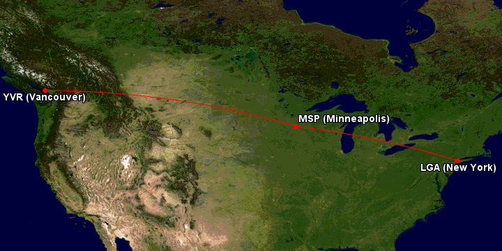 - Delta Airlines First Class: Vancouver – Minneapolis St Paul