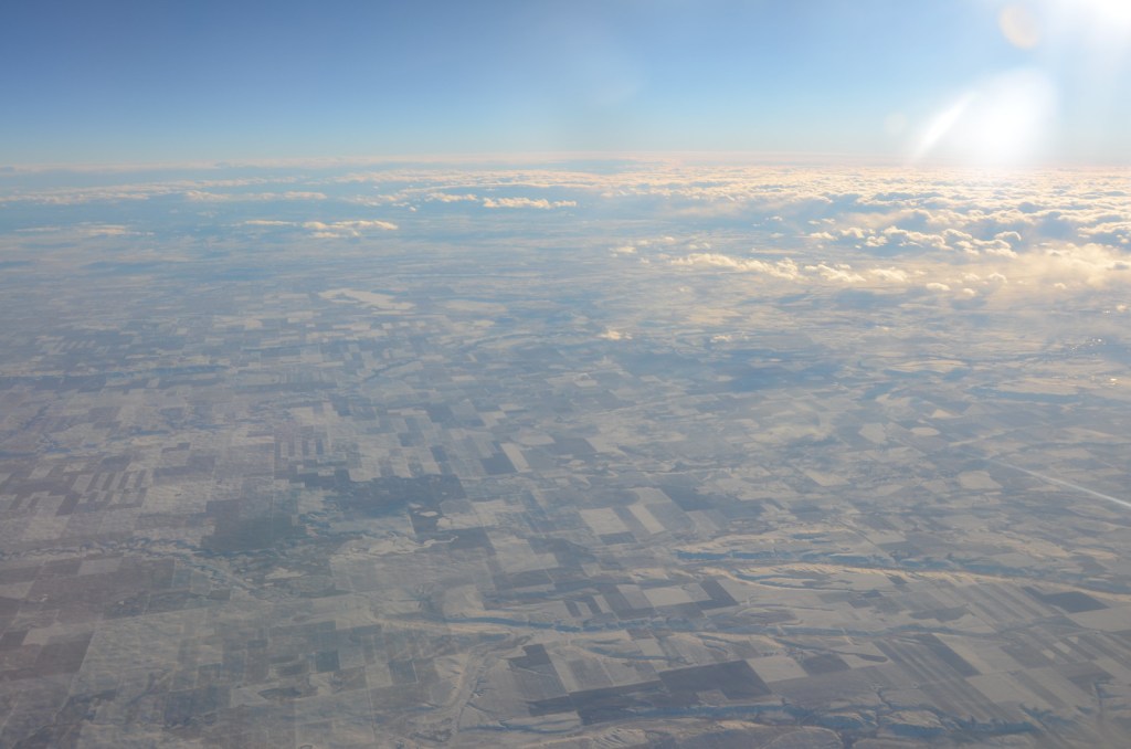 There is also no closet on this particular aircraft so I had our winter coats piled up on the arm rest next to the window.