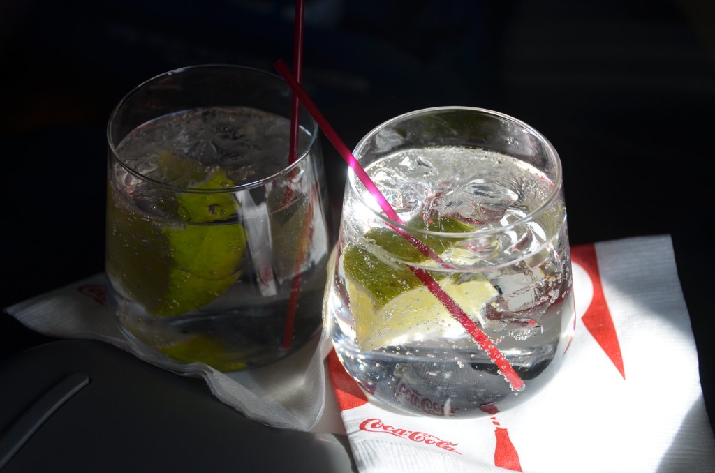 Once we got to altitude, a bar and beverage service was offered. I started with a Gin and Tonic.