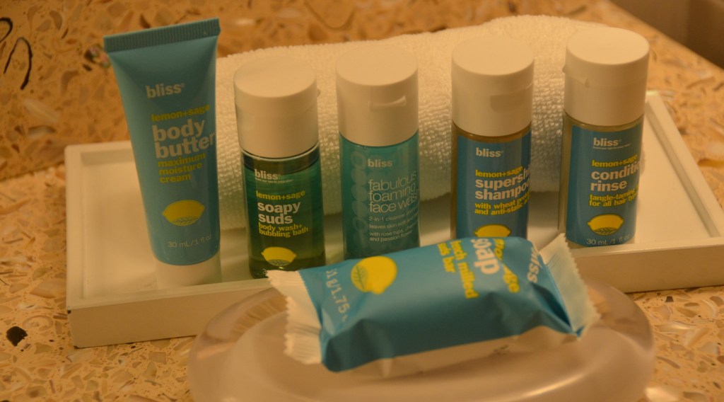 The bathroom was a little on the small side for a historic buidling. It offered a stand up shower and a single vanity sink. The W Hotel offered the usual amenities with upscale Bliss toiletries.