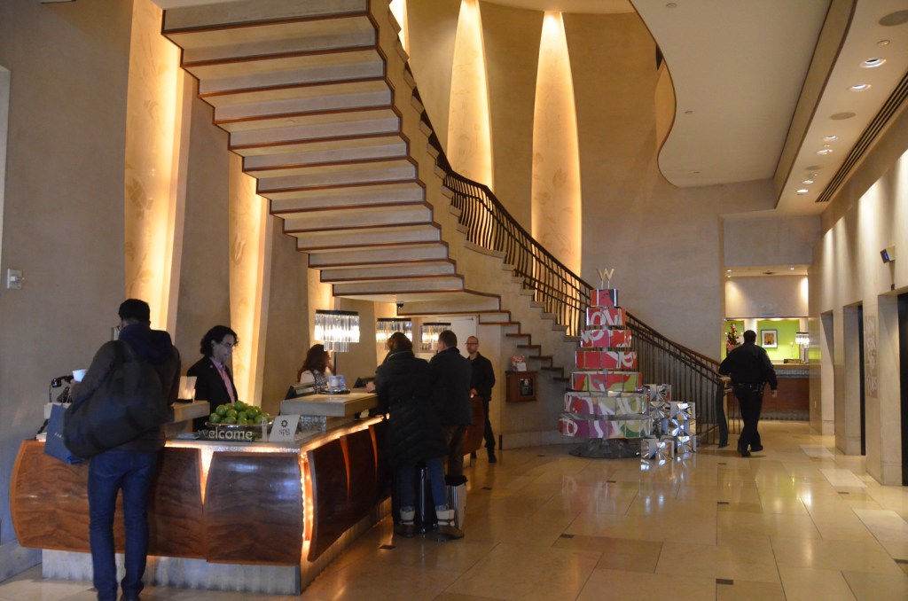 We checked ourselves in at the front counter. The front reception is located in a high ceiling lobby and situated in a space located underneath an elegant stair case. The front desk was also conveniently located across from the hotel elevators. I got the impression from the check in that this particular property was quite a high volume operation. Although, with the W Union Square offering 244 rooms and 26 suites across 21 floors, it’s not quite as large as some other New York City hotel properties.