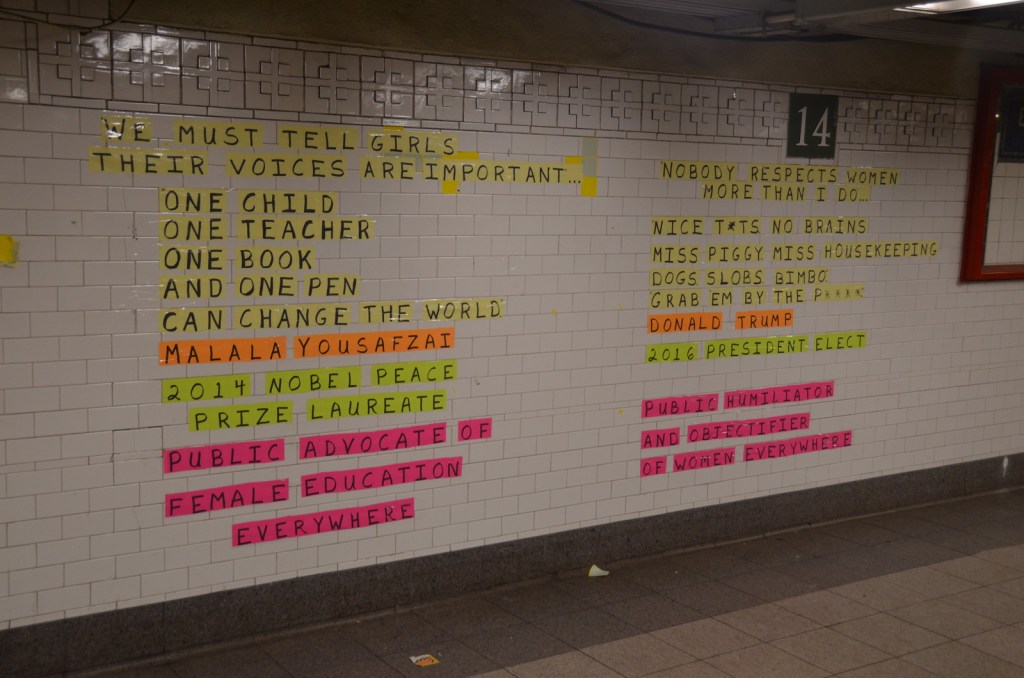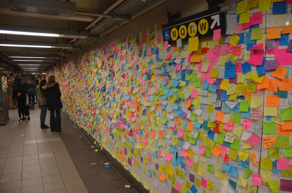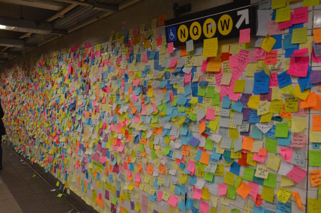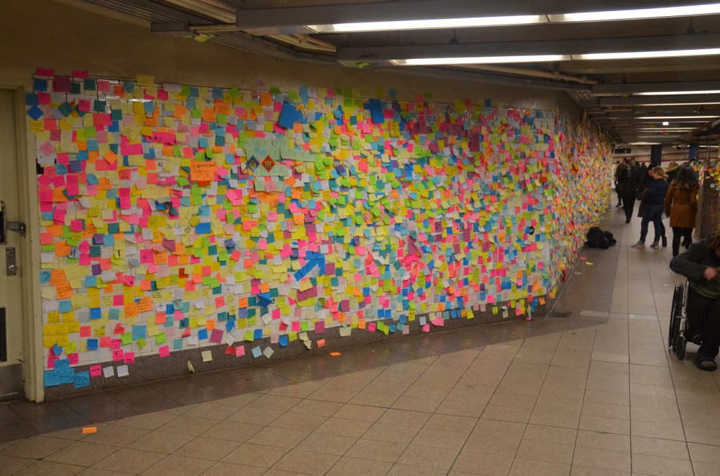 A Unique Post It Note Protest at MTA Times Square Station:
