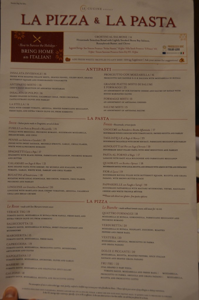 It also offers restaurants within the area so after wandering through the varieties, we went with MrsWT73’s favorite of pizza and pasta. It was prompt service consistent with its mid grade price point.