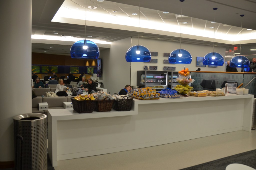 The flagship lounge in this Delta Airlines hub was under complete renovation. It wasn’t the best in the world, but it was a reasonable place to bunk down in the middle of a snow storm. Delta Airlines has either had great luck with the real estate acquisitions or has purposefully located great spaces as most Delta Sky Club’s that I’ve visited have had great outdoor looking windows. Regretfully, this one overlooked a jet bridge and was partially obstructed in the view. As a result, this particular location had the least interesting view People aren’t really missing much by not seeing the inside here.