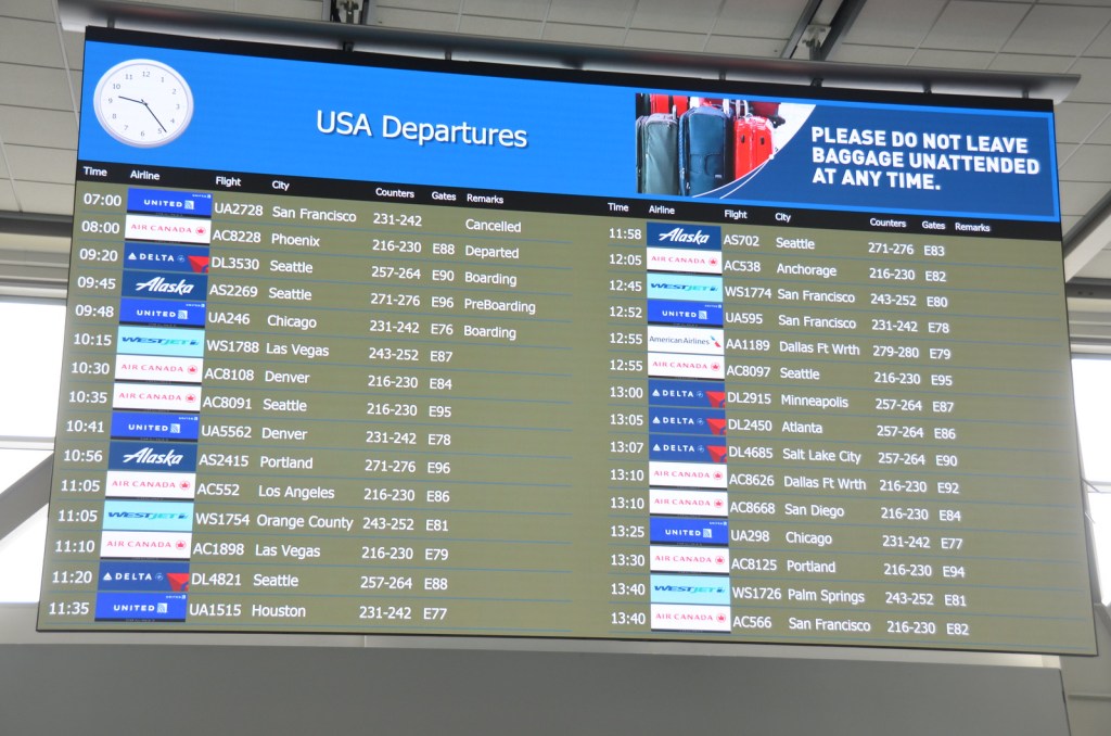 The flight posted at major delay of 1hr 12 minutes and we immediately mis-connected on our connecting flight on Alaska Airlines Seattle – Los Angeles. This was blamed on Seattle Tacoma International Airport Air Traffic Control. The gate agents in Vancouver pro-actively started re-connecting passengers but unfortunately did not get to us before we boarded.