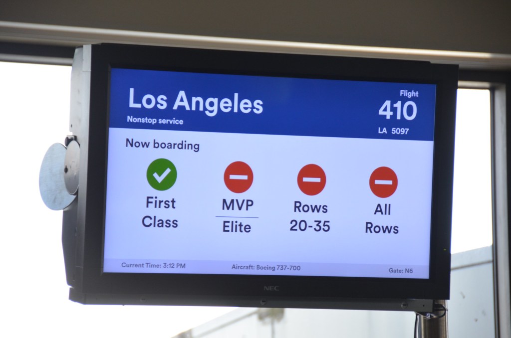 We were supposed to fly Alaska Airlines First Class Seattle – Los Angeles on an earlier flight on AS 424 but as a result of a flight delay on our Alaska Airlines First Class Vancouver – Seattle, we were downgraded to economy on the later AS 410 flight.