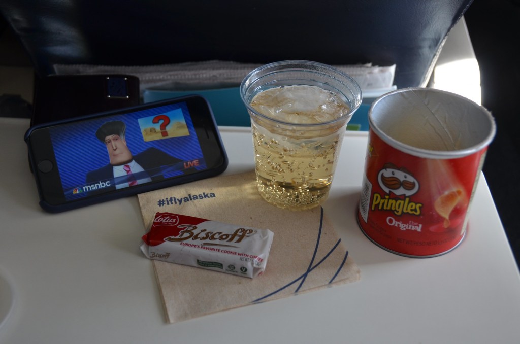 We had a straight forward flight down with pleasant crews. Once we were underway, drink service was provided twice, along with a buy on board offering. It was Pringles snack time with some Seagrams Ginger Ale as we flew down to Los Angeles. The airline provided the usual Biscoff cookies on a complimentary basis.