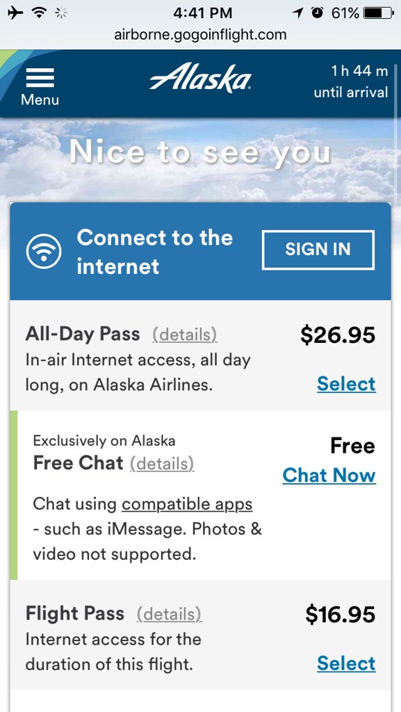 Entertainment for the flight was provided with some movies through the Alaska App on the iPhone.