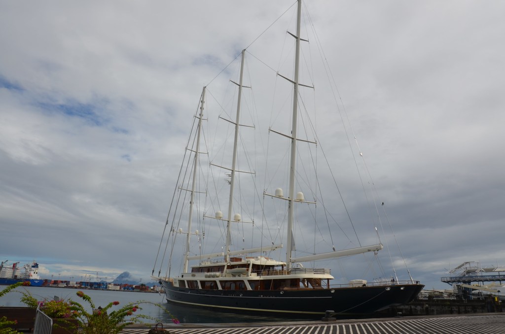 Once underway on the ferry, we had some nice views of Papeete in addition to some lovely boats that were in the area. Unfortunately, our grey weather continued on what was supposed to be a blue sunny skies holiday.