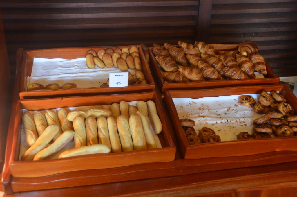 The breads were of exceptionally quality, accompanied with real “French” rich tasting butter. Those of you that have dined in France will know exactly what I mean… The croissants were so good, I saw one French looking traveler taking three of them back to his table and devouring them in one sitting. Breakfast was set outside most days with a nice waterfront setting . . .