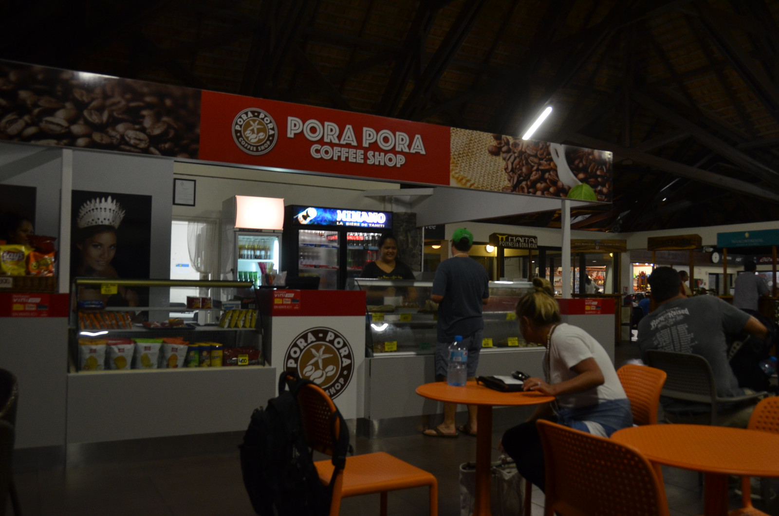 There wasn’t any free wifi from the airport, or any lounge available for travellers, but there was a “Pora Pora” coffee shop where we snacked on a surprisingly tasty panini since it was dinner time.