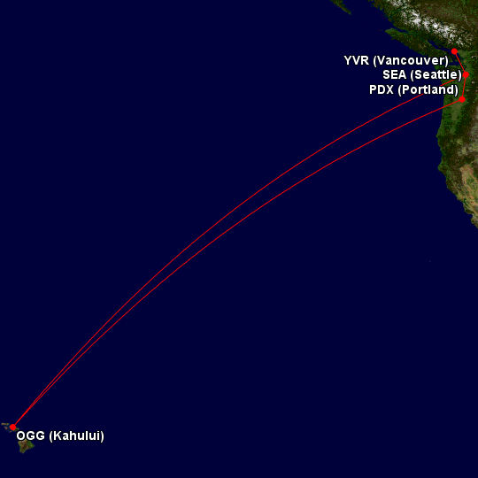 Since the Alaska Airlines Bellingham – Maui flights are seasonal, we ended up flying from Vancouver via Seattle / Portland. We used an Alaska Airlines 2 for 1 companion fare that was about to expire that we had received courtesy of the Canadian Alaska Airlines Mastercard. The Alaska Airlines Companion Fare offers a second airfare for $99 plus taxes and fees on any economy airfare purchased.There are no capacity controls on any inventory fare buckets for the Alaska Airlines Companion Fare, making it very easy to use. It’s is renewed annually with the annual fee of the Alaska Airlines Mastercard. Since there were three of us travelling, I ended up just paying for a third ticket for MrsWT73 making our tickets slightly cheaper than had we purchased three airfares outright.